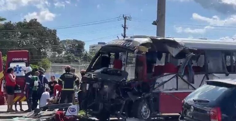 Fotos e vídeos mostram que o ônibus arrancou parte do micro-ônibus. Micro-ônibus fica sem a parte da frente após colisão com ônibus na Torquato Tapajós, em Manaus Lane Gusmão/Rede Amazônica Um acidente grave entre um ônibus e um micro-ônibus deixou feridos na Avenida Torquato Tapajós, em Manaus, nesta sexta-feira ( 2). Os dois veículos pertencem ao transporte coletivo. Fotos e vídeos mostram que o ônibus arrancou parte do micro-ônibus.