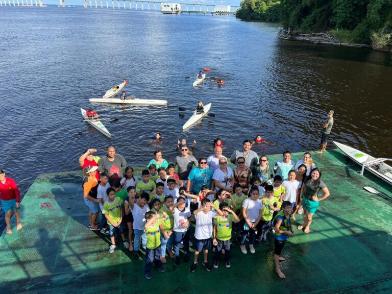 Mais de 70 alunos da Prefeitura de Manaus tiveram, neste sábado, 20/5, um dia de aprendizagem diferente, com entretenimento e conhecimento sobre o remo. O projeto é desenvolvido, de forma independente, há mais de 40 anos, pelo professor de Educação Física, Manasseh Barbosa, em uma balsa “ferry boat”, no 4º Centro de Geoinformação do Quartel do Exército, no bairro Santo Antônio, zona Oeste. Há dois anos, o projeto foi incorporado ao programa Minha Escola Saudável, da Secretaria Municipal de Educação (Semed).