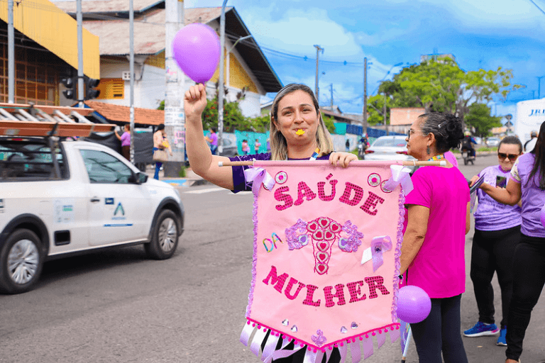 Na manhã desta quarta-feira, 20 de março, equipes de saúde da Prefeitura de Manaus realizaram uma ação marcante para sensibilizar a população sobre a prevenção e o enfrentamento do câncer do colo do útero. O evento, denominado “apitaço”, ocorreu na bola do Produtor, localizada na avenida Autaz Mirim, próxima ao bairro Jorge Teixeira, zona Leste da cidade. Essa iniciativa é parte integrante da campanha “Março Lilás”, promovida pela Secretaria Municipal de Saúde (Semsa).