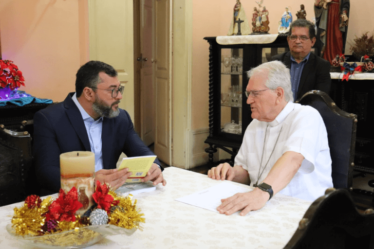 Na manhã desta quinta-feira, 15 de dezembro, ocorreu um encontro significativo entre o arcebispo de Manaus, Cardeal Leonardo Steiner, e o governador do Estado do Amazonas, Wilson Lima. A reunião, que selou um compromisso mútuo entre o governo estadual e a Igreja Católica, teve como objetivo reforçar o apoio às causas sociais e espirituais no estado, além de estabelecer um diálogo contínuo sobre as necessidades prementes da população local.