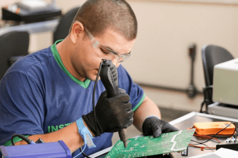 “Desde o início do curso eu tenho adquirido bastante conhecimento, principalmente, pelo fato que quando cheguei aqui o meu conhecimento era quase zero, então nesse tempo eu já fui aprimorando. Hoje em dia eu já consigo fazer um reparo em uma placa; fazer o reconhecimento de um componente; identificar um problema em uma placa. Isso tem contribuído muito para a minha carreira”.