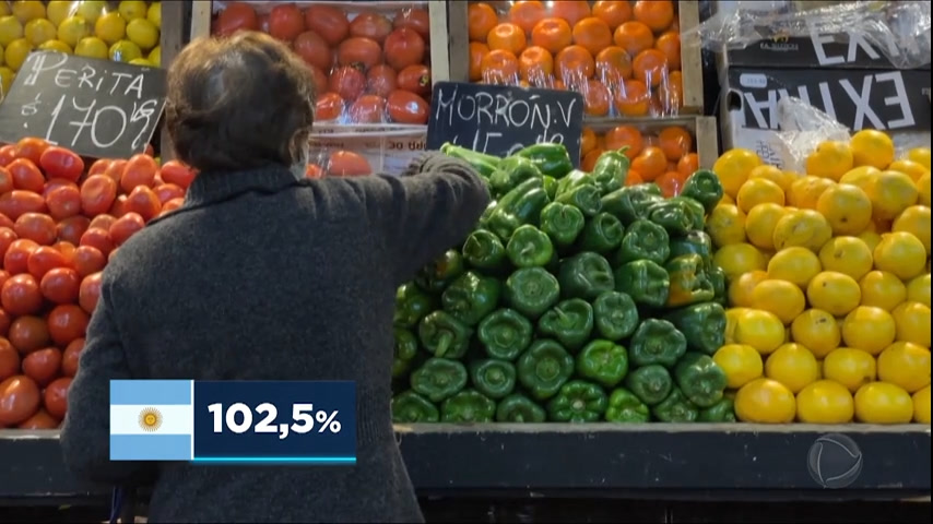 A inflação anual da Argentina superou os 100% em fevereiro pela primeira vez em mais de 30 anos. A taxa de inflação em fevereiro foi de 6,6%, atingindo 102,5% no acumulado de 12 meses. É o índice mais alto em 32 anos, segundo o Instituto Nacional de Estatísticas e Censos.