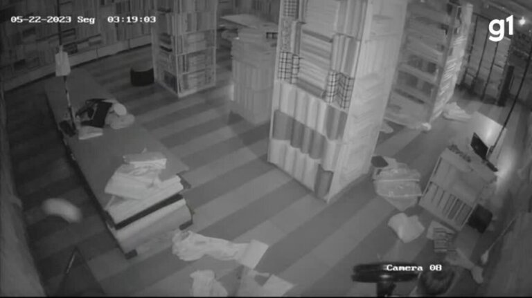 Câmeras de segurança têm registrado uma rotina de invasões e roubos a lojas no Centro de Manaus, durante a madrugada, segundo lojistas. Na madrugada desta segunda-feira (22), 15 homens invadiram uma loja de tecidos na Rua dos Andradas e, de acordo com a proprietária, deram prejuízo de mais de R$ 100 mil.
