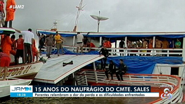 Além dos mortos, outras duas pessoas ficaram desaparecidas e corpos nunca foram encontrados. Naufrágio da embarcação ‘Comandante Sales’ que deixou 48 mortos completados 15 anos no AM O naufrágio da embarcação Comandante Sales, que deixou 48 pessoas mortas, na região de Manacapuru, no interior do Amazonas, completou 15 anos, na quinta-feira (4) . Além dos mortos, outras duas pessoas ficaram desaparecidas e os corpos nunca foram encontrados. O comerciante Davi Silva vive quinze anos de saudade. Ele perdeu oito pais no naufrágio do barco Comandante Sales, em 4 de maio de 2008.” ao amanhecer, saiu do lago e atravessou o Rio Solimões. Em um ponto da viagem, as águas desgovernaram a embarcação com a movimentação das mais de 120 pessoas que estavam a bordo. Foram 10 dias de buscas até o registro de 48 mortos, entre eles , o dono da viagem e dois desaparecidos. O empresário Vacinar Sales desempenhou a difícil tarefa de transportar os pais dos passageiros ao Instituto Médico Legal (IML), para a identificação dos corpos. Ele lembrou os momentos difíceis que viveram.” Luís Alves de Sales, que comandava a embarcação, foi o único a ser preso pelo acidente. Depois foi julgado e absolvido, apesar de constatada a falta de habilitação do condutor. Além disso, foi revelado que o barco Comandante Sales não tinha autorização da Capitania dos Portos para navegar. De acordo com laudo pericial na época, o acidente teve como causas determinantes o excesso de pessoas a bordo, alterações ocorridas sem o acompanhamento de um responsável técnico habilitado, a quantidade insuficiente de coletes salva-vidas e ausência de aparelho flutuante ou bóias. Passados quinze anos, duas famílias seguem sem informações sobre o paradeiro de dois passageiros considerados desaparecidos no acidente. Mesmo após a tragédia, nenhuma alteração nos procedimentos de fiscalização de superlotação foi feita nas embarcações que circulam pelo Rio Solimões. *Com informações de Adauto Silva, da Rede Amazônica Vídeos mais assistidos do Amazonas