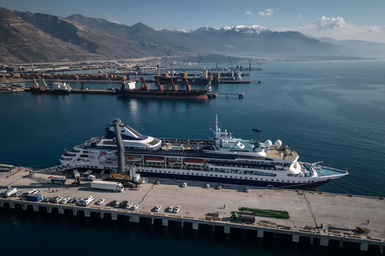 Uma embarcação de luxo abriga cerca de mil sobreviventes dos terremotos que atingiram a Turquia e a Síria, em fevereiro. Mais de 50 mil pessoas morreram e 1,7 milhão ficaram desabrigadas. O navio de cruzeiro Gemini, antes, levava turistas para as ilhas gregas. Ele está no porto de Iskenderun, na província turca de Hatay.