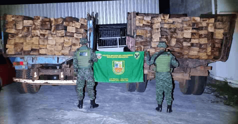 Na noite da última segunda-feira (29/01), a Polícia Militar do Amazonas, por intermédio do Batalhão de Policiamento Ambiental (BPAmb), efetuou a apreensão de 32 metros cúbicos de madeira, dois caminhões e um barco no município de Manacapuru, situado a 68 quilômetros de Manaus. Um homem, de 39 anos, foi detido durante a operação.