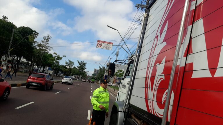 A Prefeitura de Manaus, por meio do Instituto Municipal de Mobilidade Urbana (IMMU), fiscalizou a circulação, documentos e estado de conservação de veículos pesados que transitavam na avenida Djalma Batista, sentido bairro/Centro, na manhã desta terça-feira, 6/ 6. A operação resultou em 33 veículos autuados e 31 motoristas foram multados por dirigir sem cinto de segurança e dois veículos pesados por transitar dentro do horário de restrição de circulação no local.