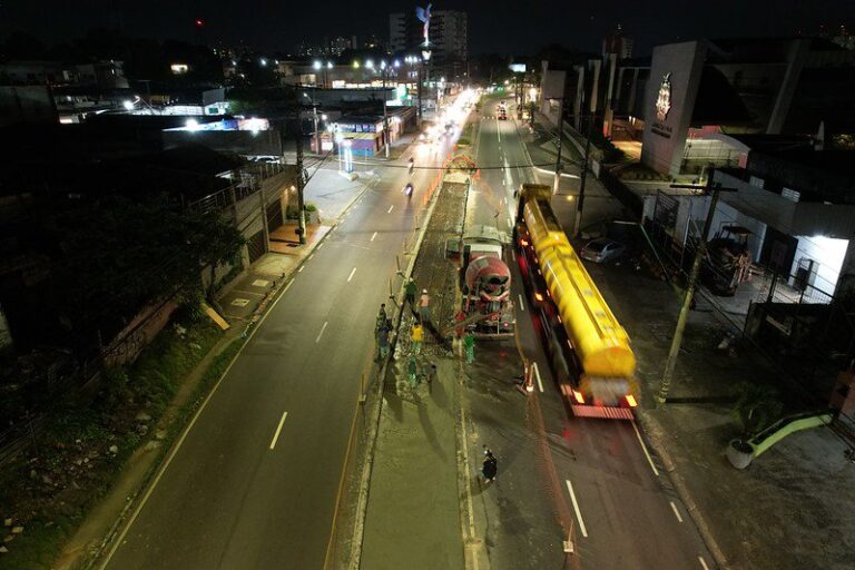 A Prefeitura de Manaus, por meio da Secretaria Municipal de Infraestrutura (Seminf), executou a concretagem da base dos cem primeiros metros da nova faixa de extensão da avenida Efigênio Sales, no bairro Aleixo, zona Centro-Sul, na noite desta sexta-feira , 5/12.