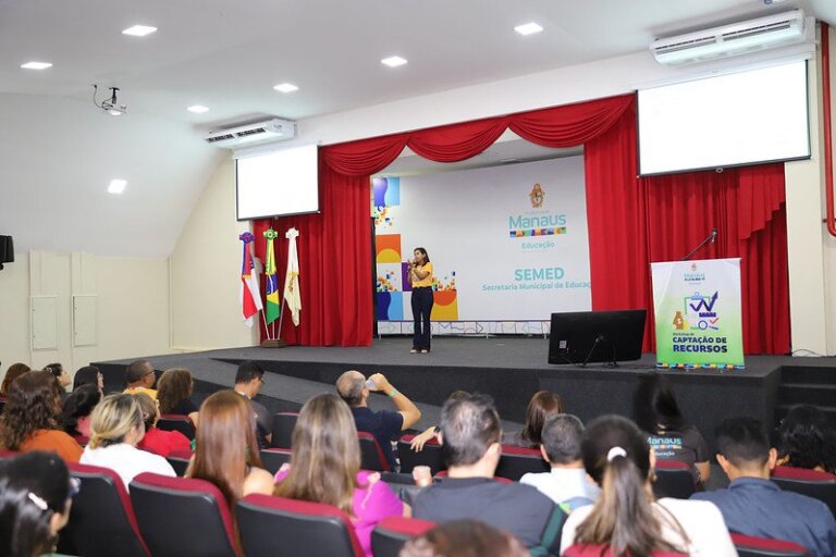 A Prefeitura de Manaus, por meio da Secretaria Municipal de Educação (Semed), promoveu, nesta terça-feira, 9/5, o workshop de “Captação de Recursos”, no auditório Luiz Geraldo Pontes Teixeira, no bairro Parque 10 de Novembro, zona Centro-Sul. O evento apresentou conceitos e ações voltadas à temática, além de esclarecer as dúvidas em relação à execução do Plano de Ações Articuladas (PAR), convênios e emendas parlamentares.