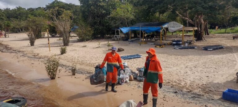 A Prefeitura de Manaus, por meio da Secretaria Municipal de Limpeza Urbana (Semulsp), realizou sexta-feira, 5/12, uma ação de limpeza nesta praia da Lua, em um esforço para manter a beleza natural da região. Com o objetivo de mitigar o problema de abandono e descarte inadequado de resíduos no local, cerca de 20 servidores executaram a limpeza de toda extensão da praia.